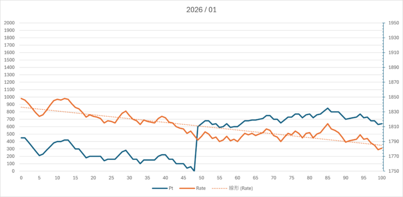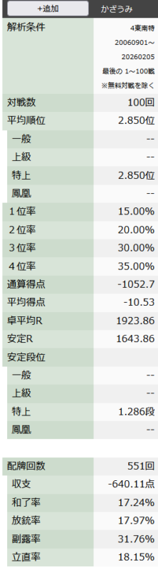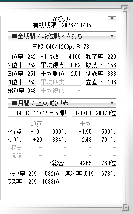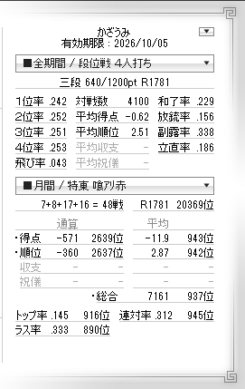 2026年01月の100東風.ここまで通算天鳳4100戦.